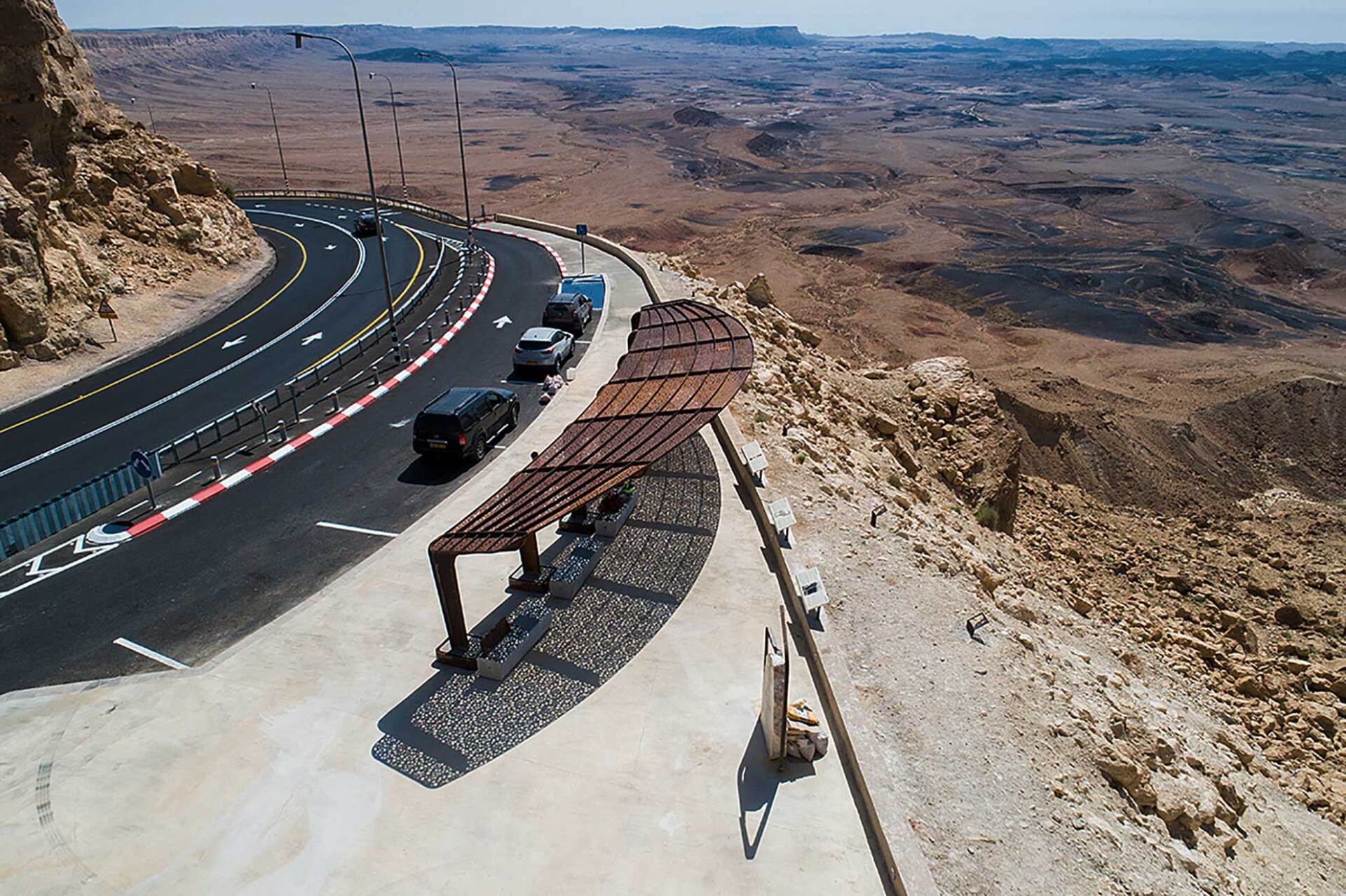 המצפור ממוקם במכתש רמון, כביש 40 במצפה רמון.